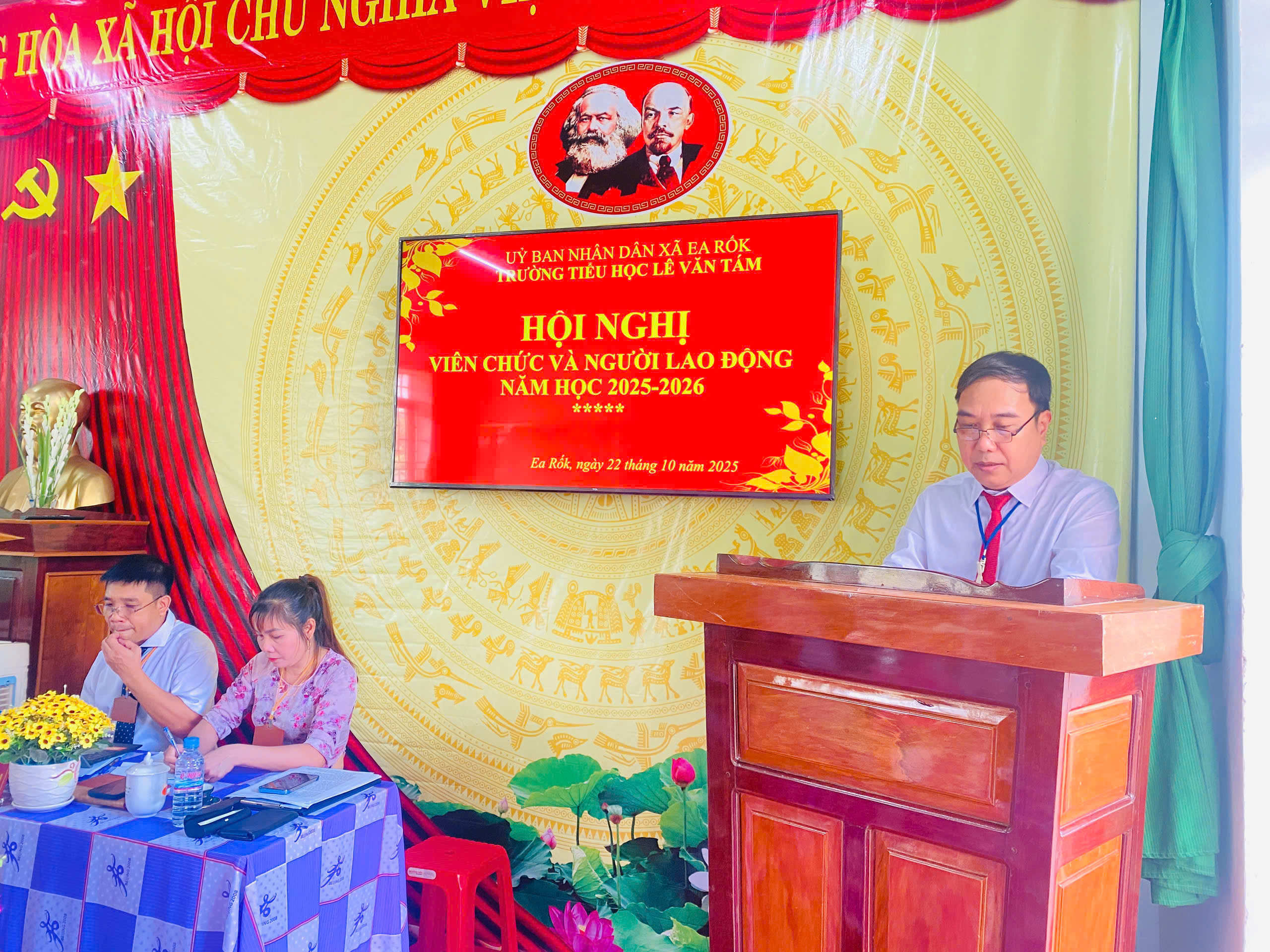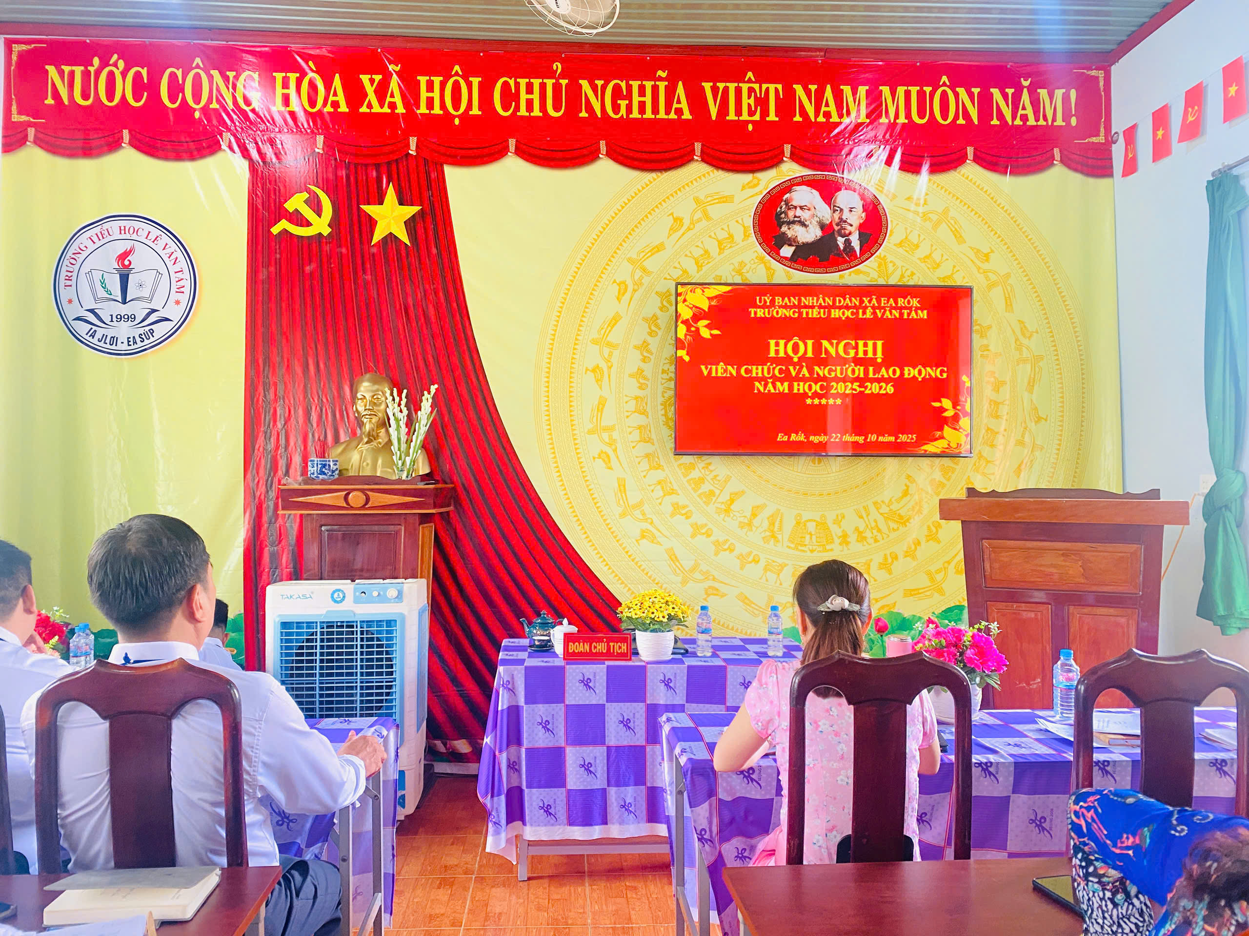 Trong không khí thi đua sôi nổi của những ngày đầu năm học mới, hồi 14 giờ 00 phút ngày 22 tháng 10 năm 2025, Trường Tiểu học Lê Văn Tám đã long trọng tổ chức Hội nghị viên chức và người lao động năm học 2025 – 2026. Đây là dịp để tập thể sư phạm nhà trường cùng nhìn lại những kết quả đã đạt được trong năm học qua, đồng thời đề ra phương hướng, nhiệm vụ và các giải pháp trọng tâm cho năm học mới.
