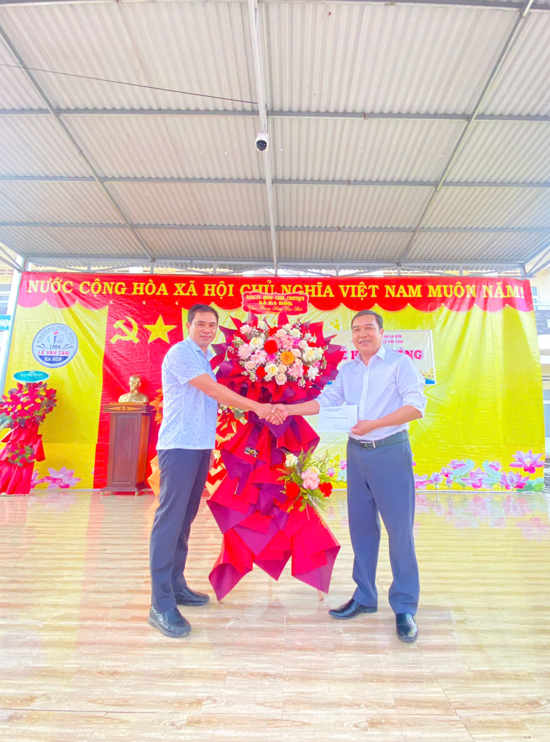 Đại Biểu đại diện Đảng ủy – Ủy ban nhân dân xã Ea Rốk tặng hoa và quà nhân dịp khai giảng