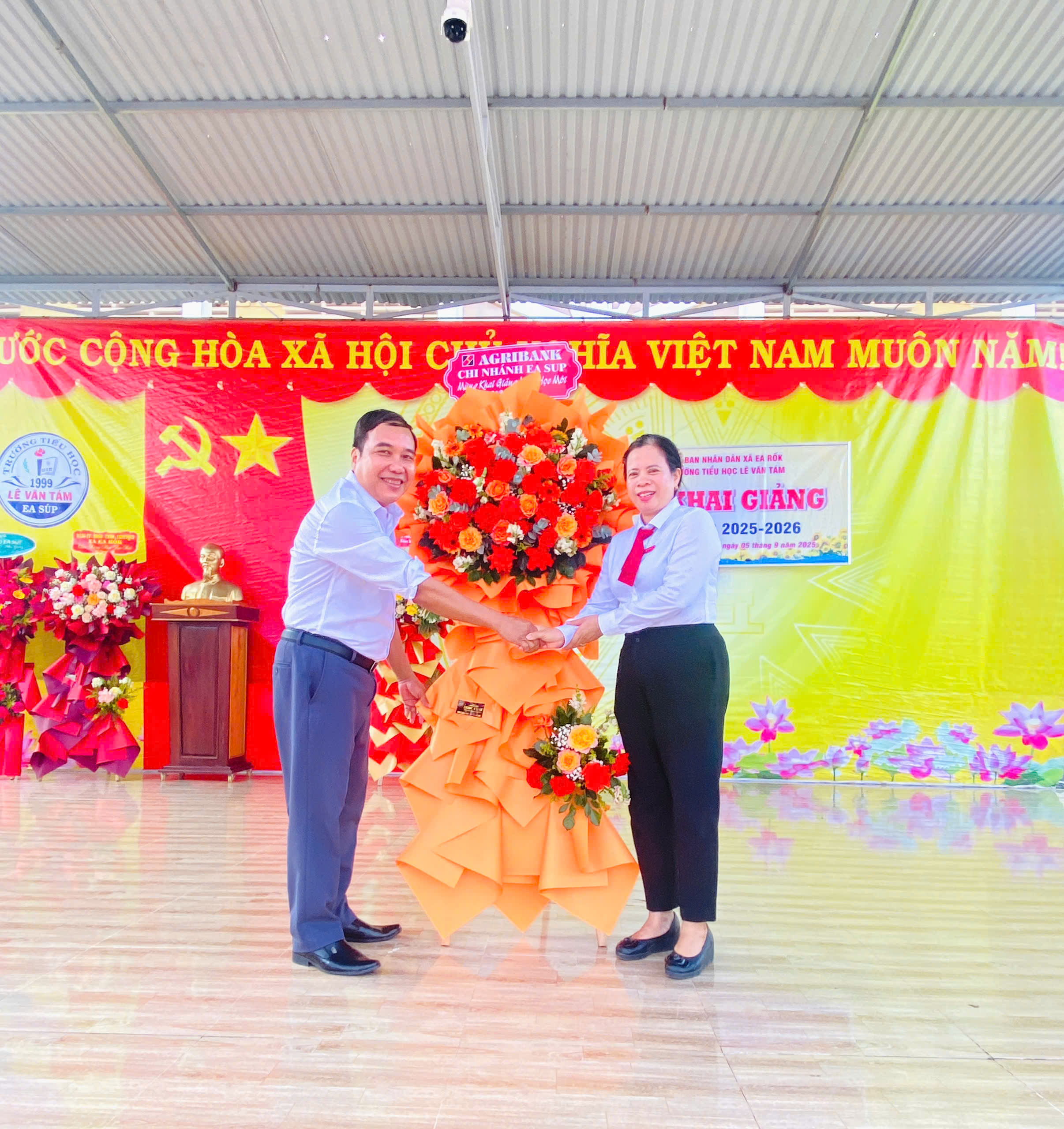 Đại diện ngân hàng Agribank tặng hoa chúc mừng khai giảng
