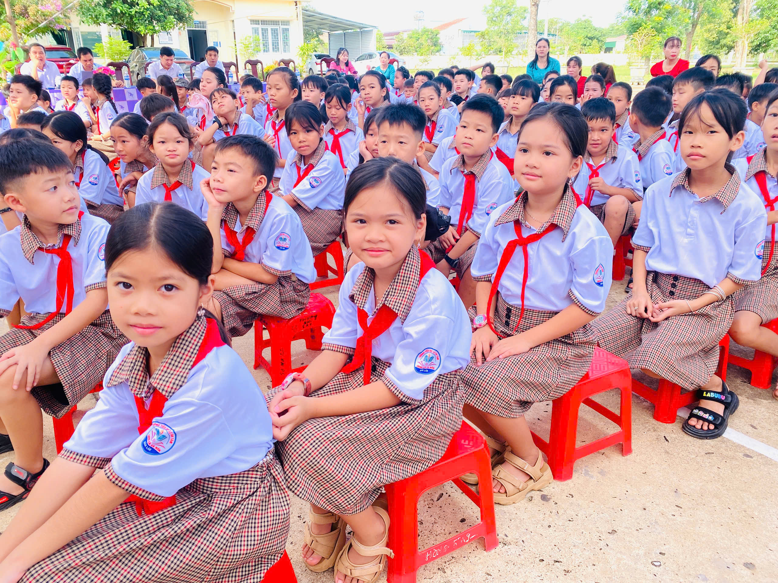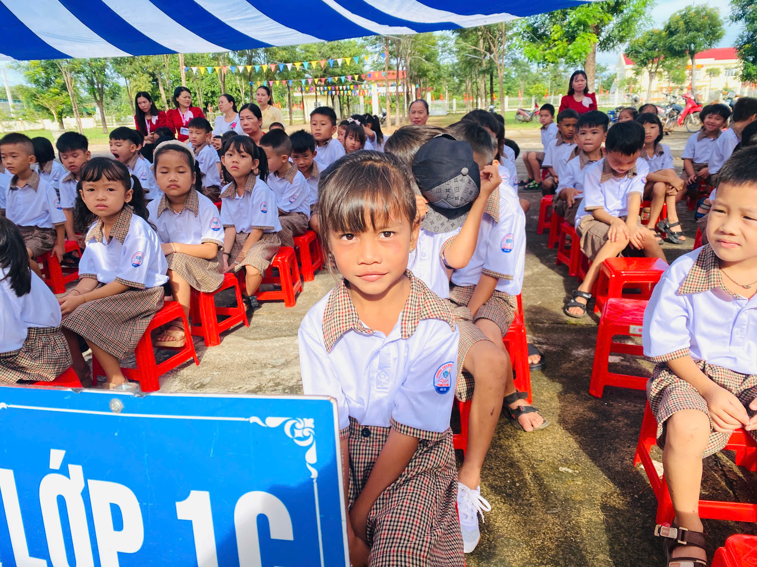 Một trong những điểm nhấn trang trọng và đầy cảm xúc trong buổi lễ là phần đón học sinh lớp Một – những “Mầm non” đầu tiên bước vào cánh cửa Tiểu học. Trong tiếng nhạc rộn ràng và những tràng pháo tay nồng nhiệt, các em học sinh lớp Một được thầy cô và các anh chị lớp trên đón chào bằng tình yêu thương và sự khích lệ. Đây là khoảnh khắc không thể nào quên, ghi dấu bước ngoặt đầu đời trong hành trình học tập của các em.